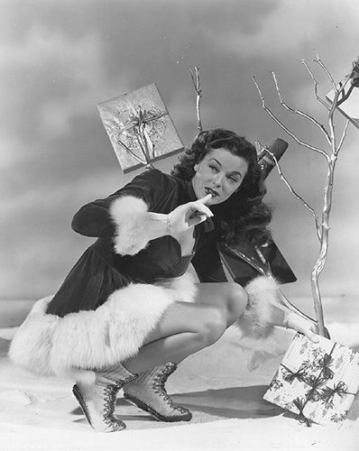 Elizabeth Montgomery, Elizabeth Taylor, Ava Gardner, Jane Greer, Humphrey Bogart with Lauren Bacall and son, Jane Wyman & Rock Hudson (in "Tout ce que le ciel permet" Douglas Sirk), Loretta Young & Cary Grant, Marian Marsh, Marilyn Monroe, Nancy Carroll, Rita Hayworth, Norma Shearer, Sharon Tate, Priscilla Lane, Marguerite Chapman, Joan Bennett & Cary Grant, Joan Crawford with her Christmas wreath, Carole Lombard, Cyd Charisse, Lauren Bacall, Marilyn Monroe & William Powell, John Payne and Natalie Wood, Miracle on 34th Street (1947), June Marlowe via The silent movie blog.